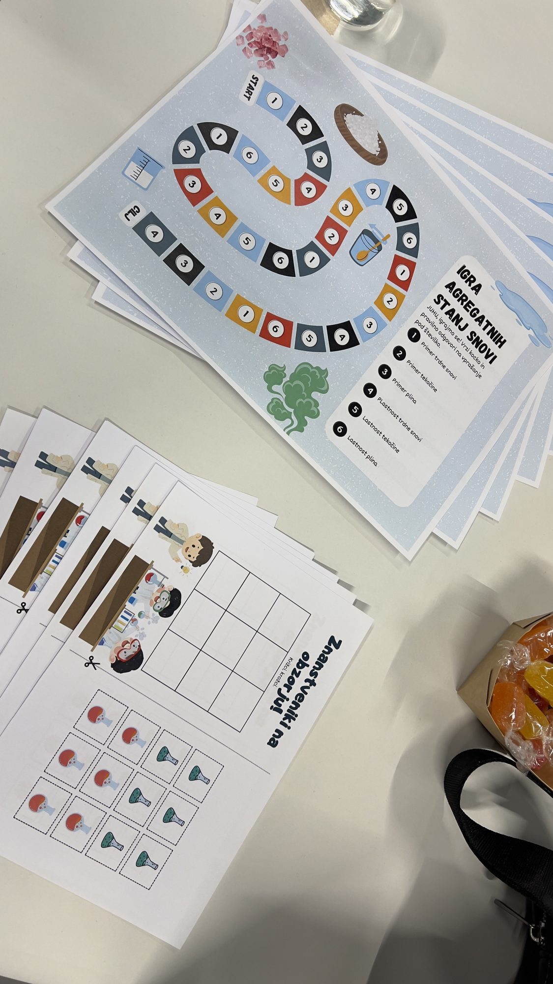 Obiskovalci so lahko na naših delavnicah videli, kako nastanejo dišeče meglice s suhim ledom, merili pH vrednosti različnih pijač, se naučili in ugotovili, katere pijače so za zobe najbolj škodljive. Prav tako smo za obiskovalec pripravili kratek preizkus znanja o elementih periodnega sistema in smo njihove odgovore nagradili z drobnimi pozornostmi.