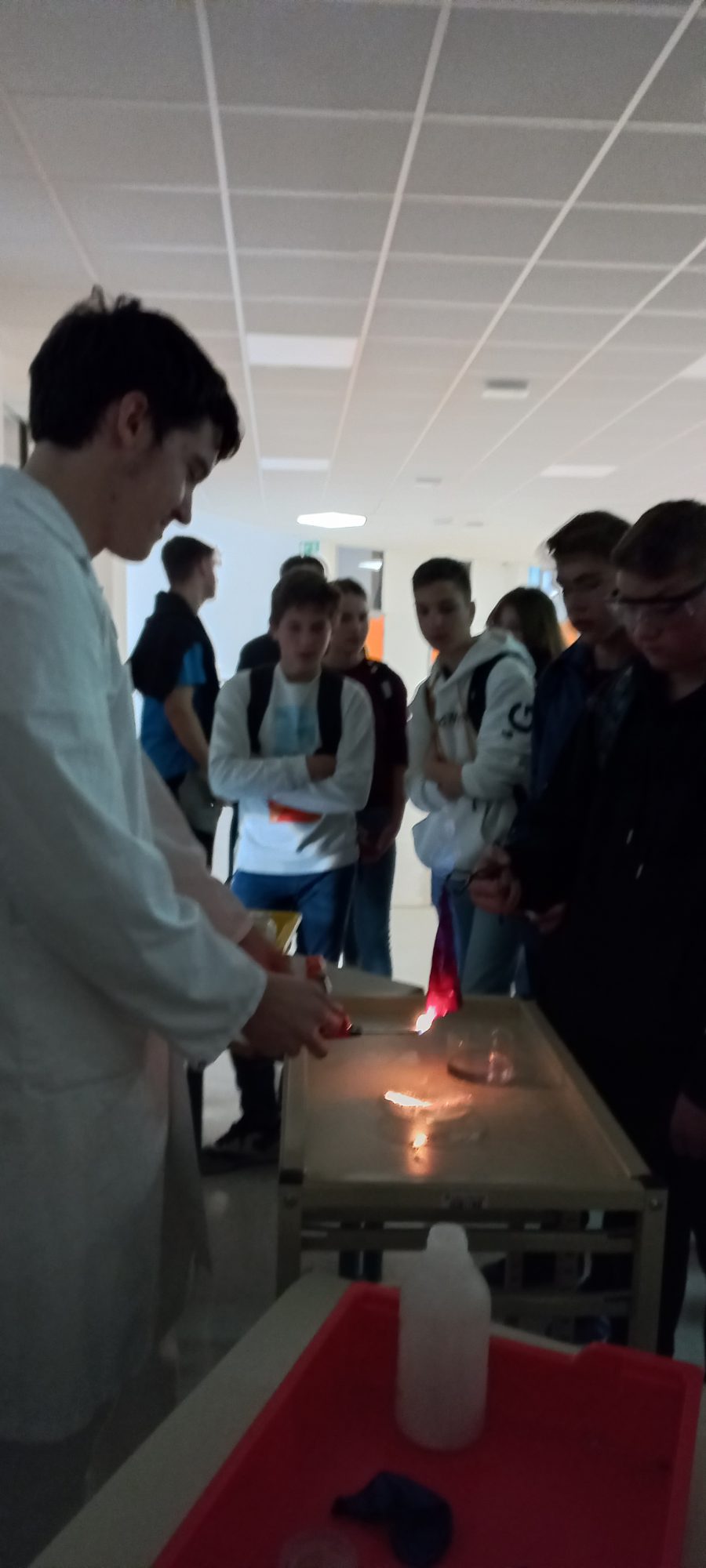 Dijaki K3a: Iana Gavrilova, Tina Črepinšek, Maja Husar, Manca Marić, Klemen Dremšak in Anžej Leskovšek so z zanimivimi kemijskimi poskusi zabavali udeležence Dneva odprtih vrat.