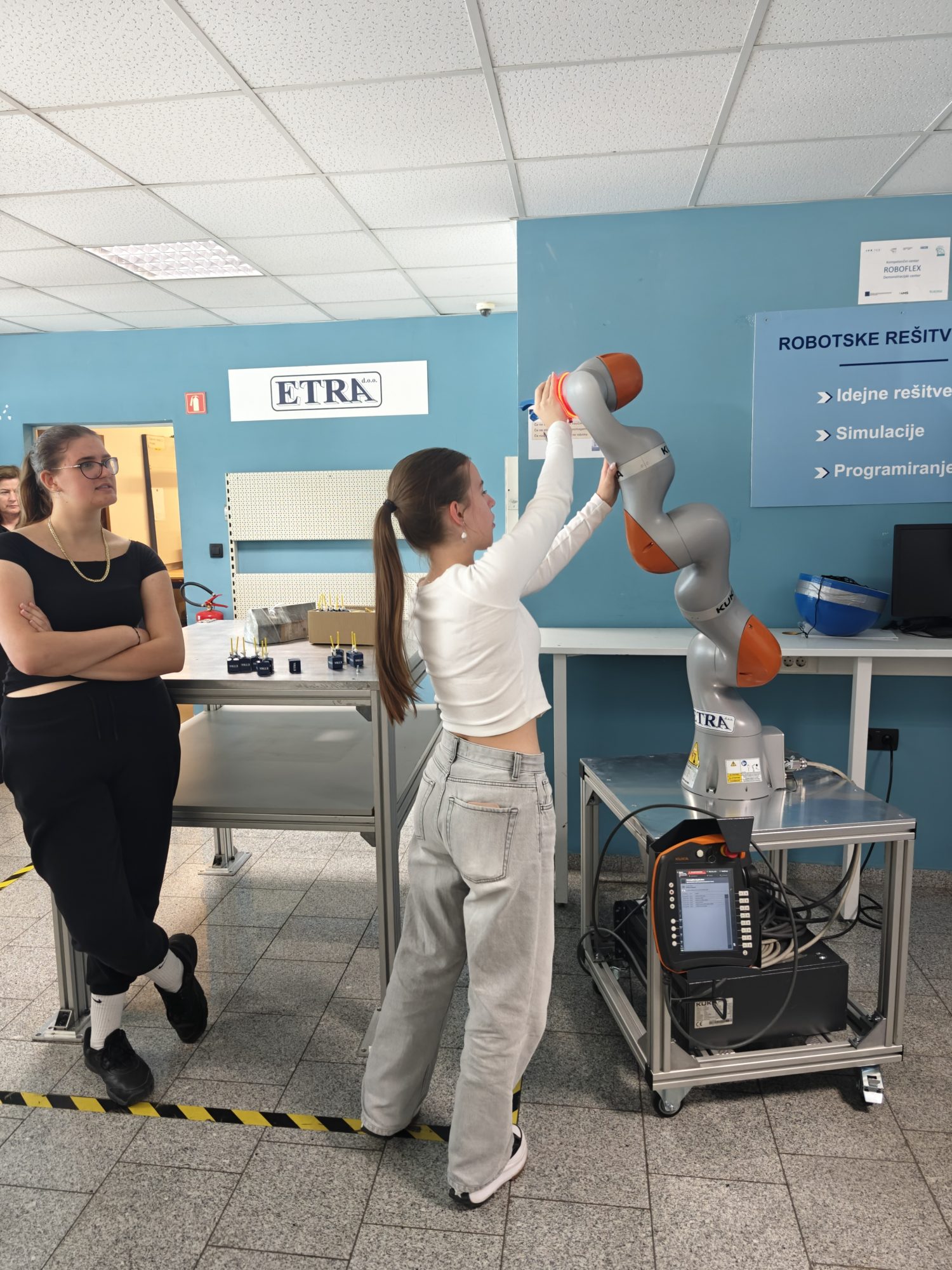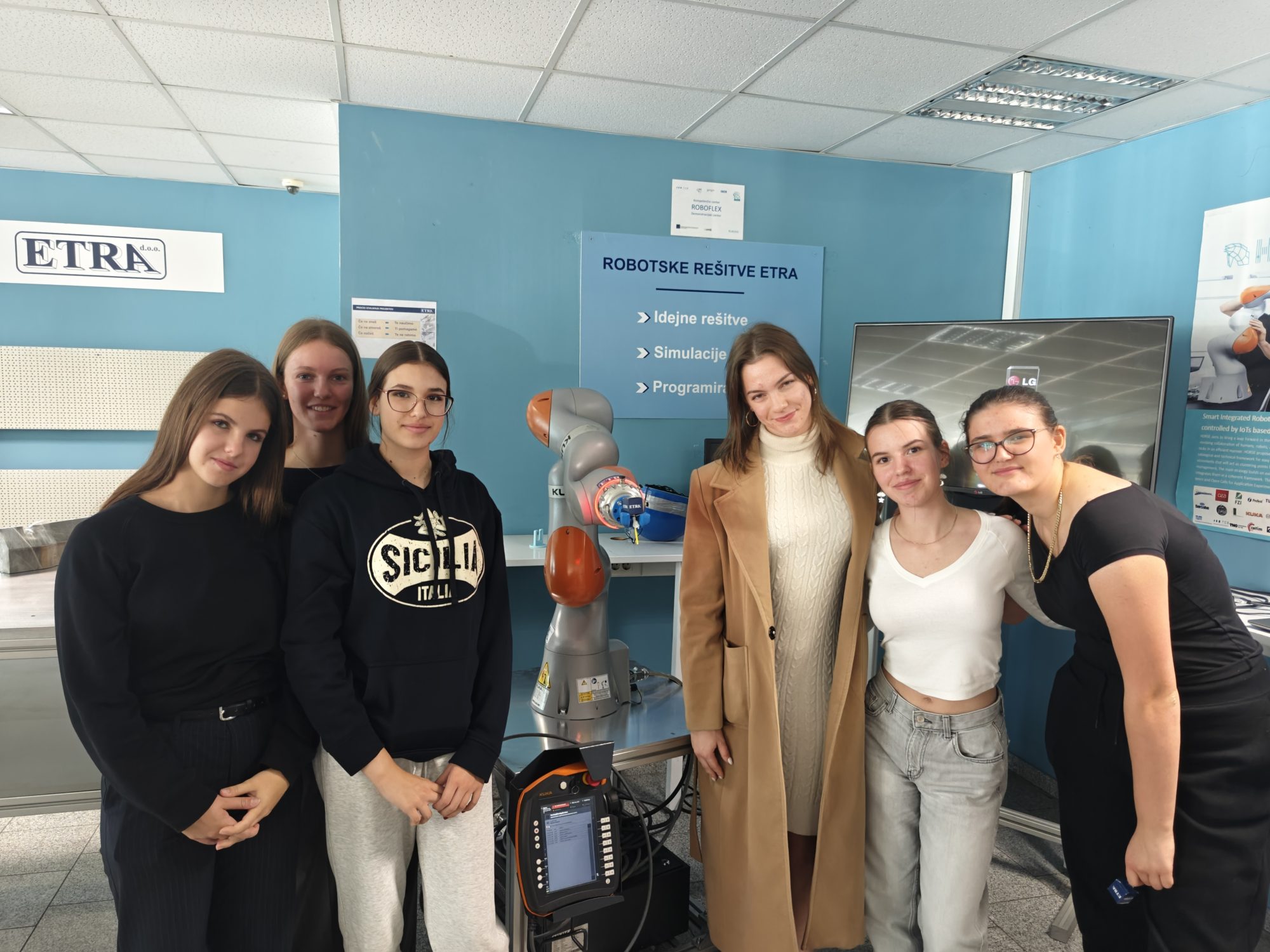 Sodelovalo je šest naših dijakinj – štiri iz programa tehnik računalništva in dve iz programa elektrotehnik, ki so skupaj s svetovalnima delavkama obiskale podjetje ETRA. To priznano slovensko podjetje je specializirano za robotiko, avtomatizacijo, strojegradnjo in digitalizacijo, ki že od leta 1994 razvija rešitve za industrijo prihodnosti.