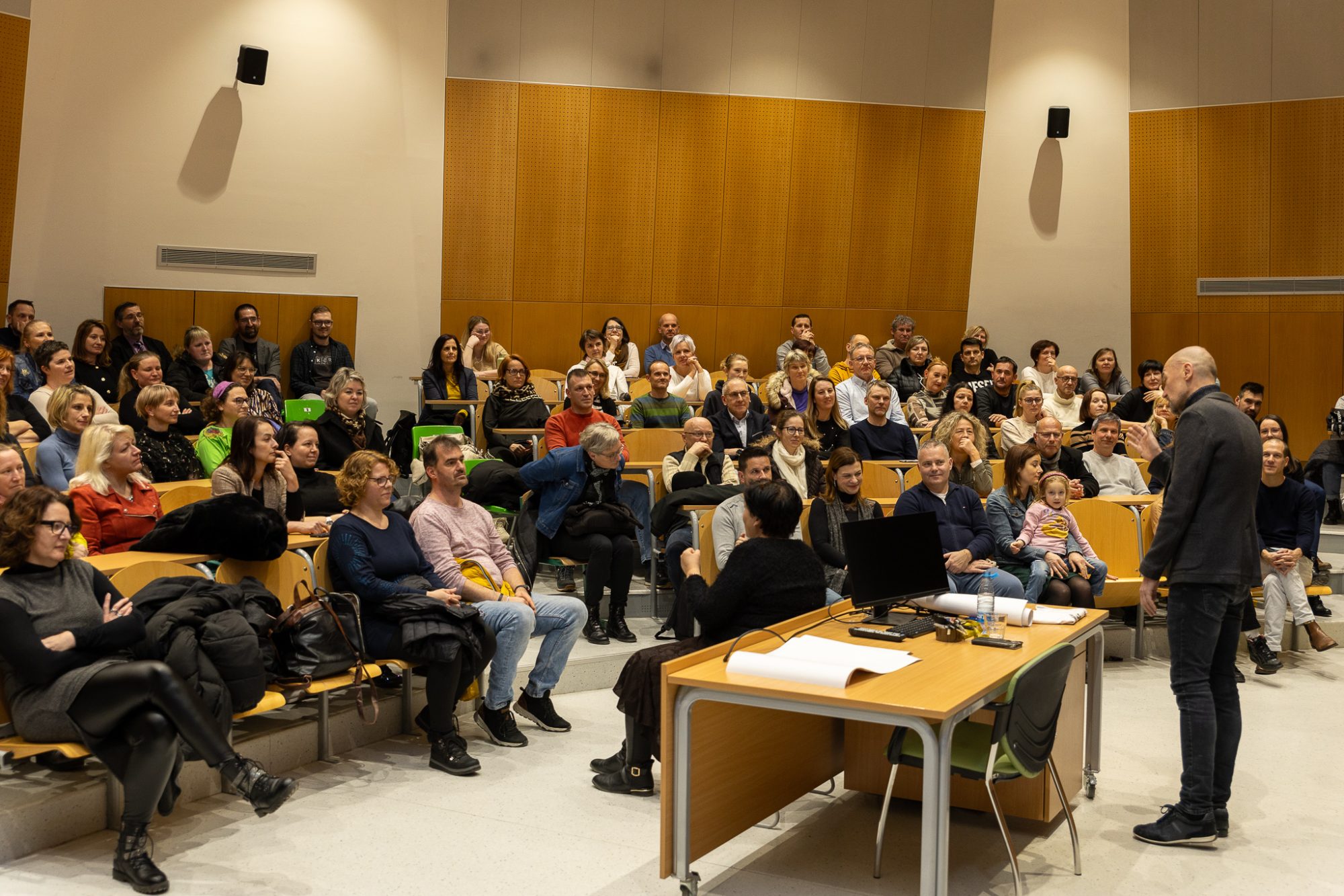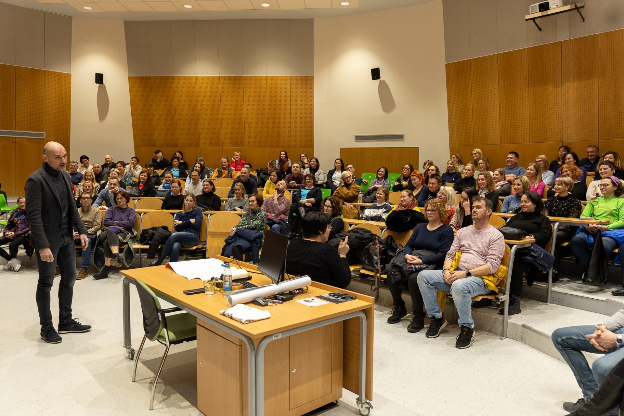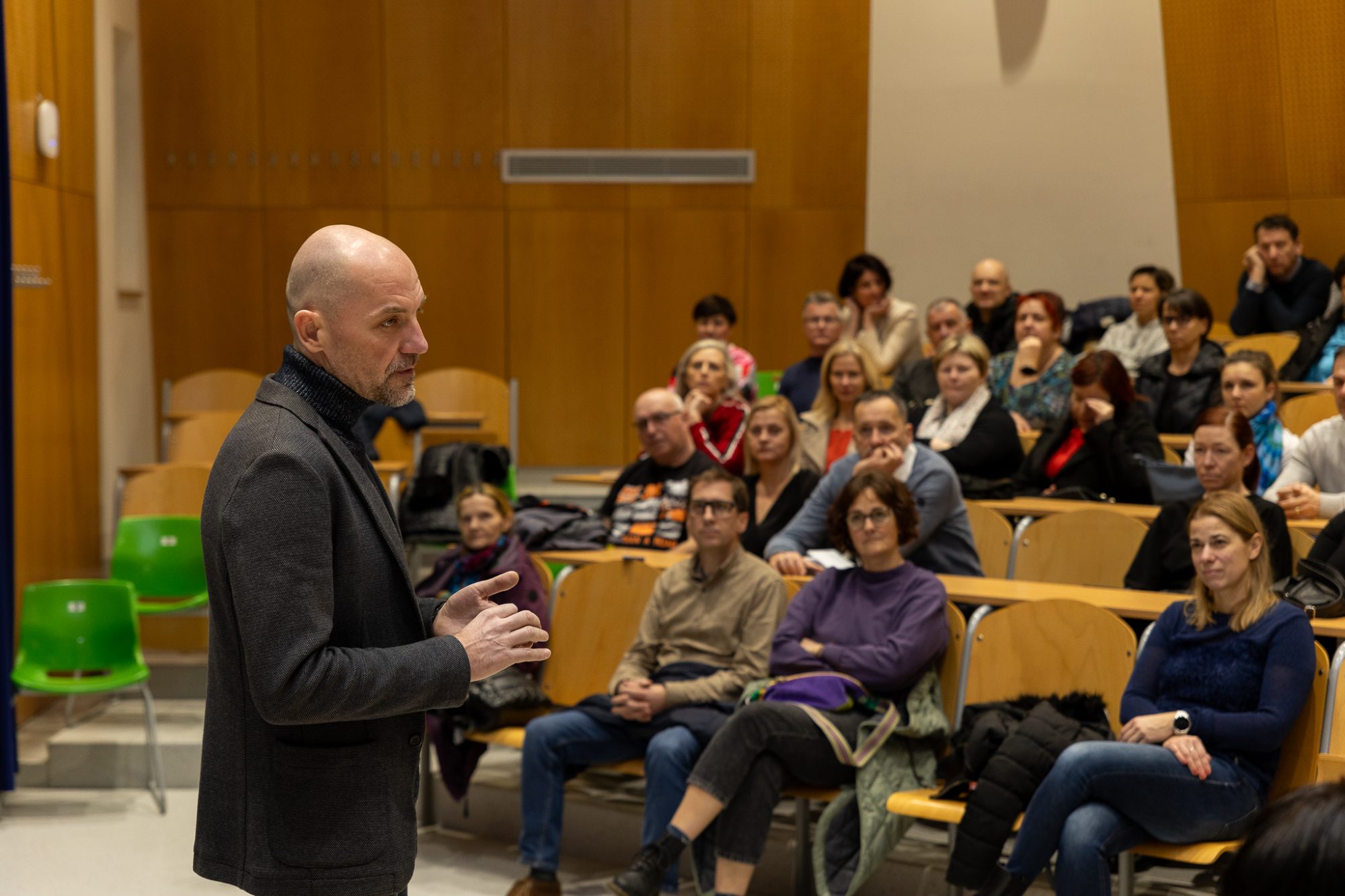 Predavanje je izvedel mag. Jani Prgić, ki je vodilni strokovnjak v Sloveniji za aplikativno rabo spoznanj nevroznanosti pri vodenju timov, izvajanju komunikacijskih treningov, programih za pomoč v stiski, poučevanju in delu s klienti, učenci, skupinami.