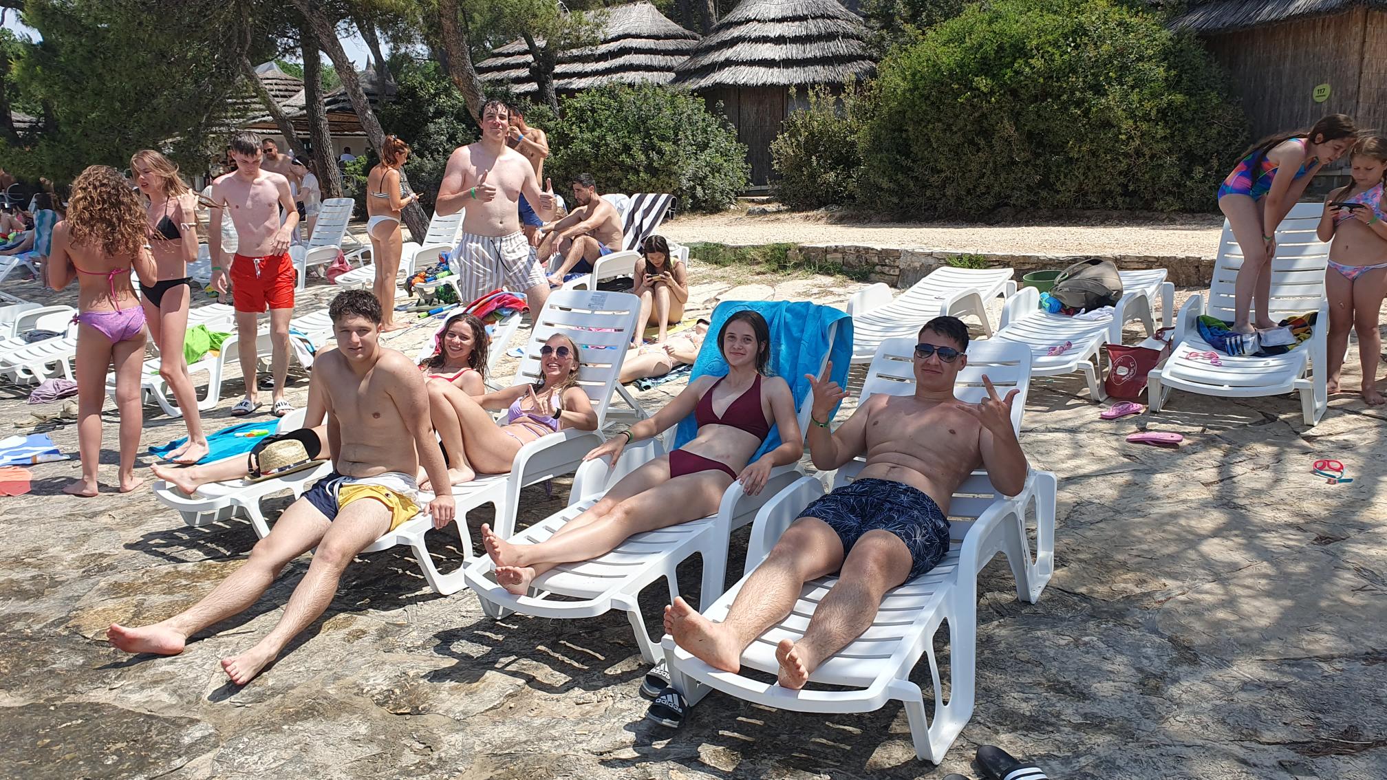 Tudi letos smo se za zaključek leta vrnili v Dalmacijo, v Pine Beach Pakoštane, kjer smo izvedli športni tabor. Tokrat v nekoliko manjšem številu kot običajno, 21 dijakov, večina kemijkov, je zaključek leta preživelo na dalmatinski obali. Med slamnatimi hiškami, v katerih smo bivali, ne manjka možnosti za aktivno preživljanje časa. Seveda pa se je bil največji užitek ohladiti v prijetno hladni vodi. Pestra ponudba v kuhinji je poskrbela za redno nadomeščanje izgubljene energije.