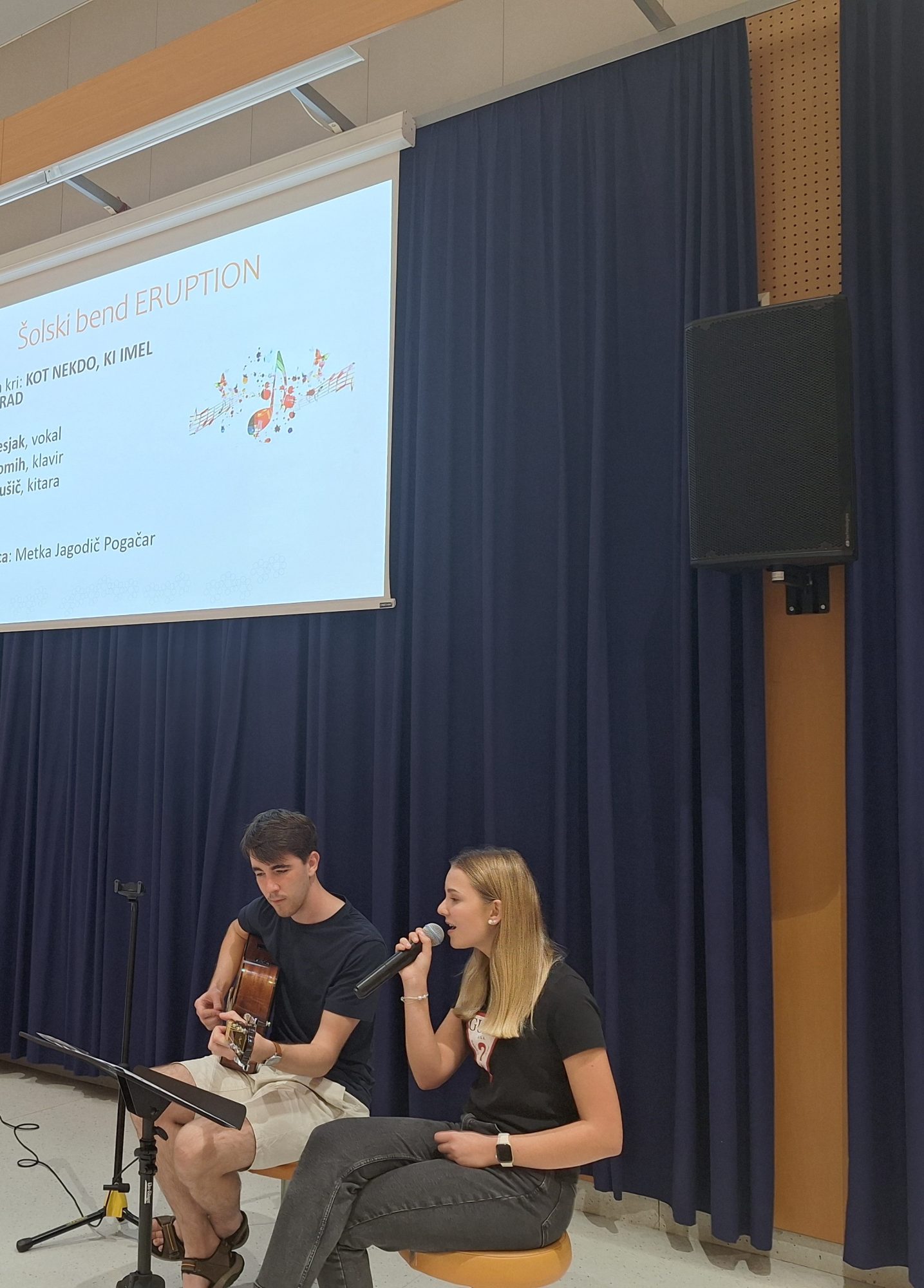 Za glasbeni pozdrav je poskrbel šolski bend ERUPTION pod vodstvom profesorice Metke Jagodič Pogačar.