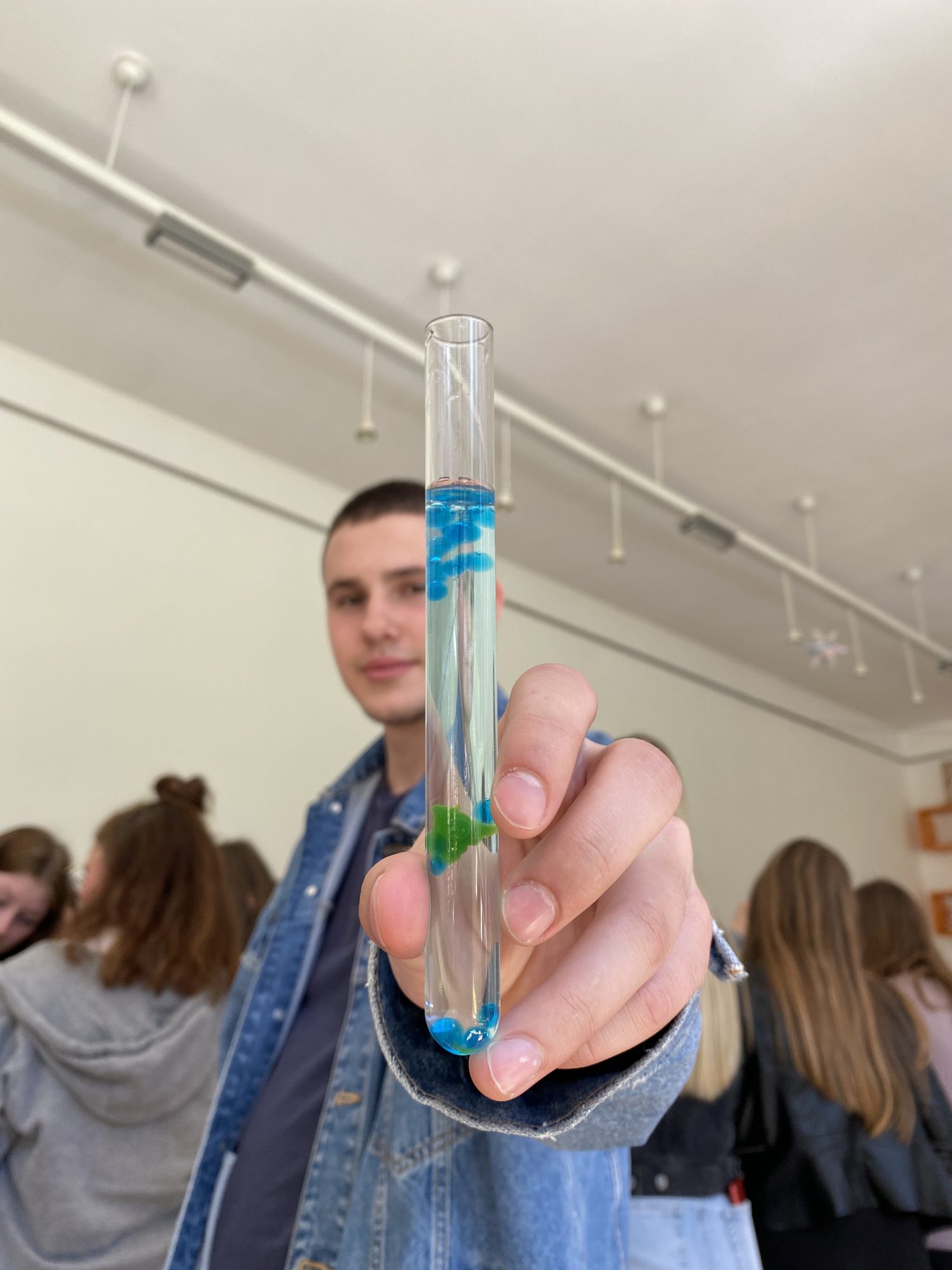 Pri poskusu z naslovom Priprava sadnega kaviarja je bil predstavljen postopek njegove izdelave iz raztopine natrijevega alginata in raztopine kalcijevega klorida. Nastali kaviar so dijaki lahko tudi poskusili, saj so bile uporabljene sestavine iz jedilnih snovi in se ta način priprave tudi sicer uporablja v t.i. molekularni kuhinji.